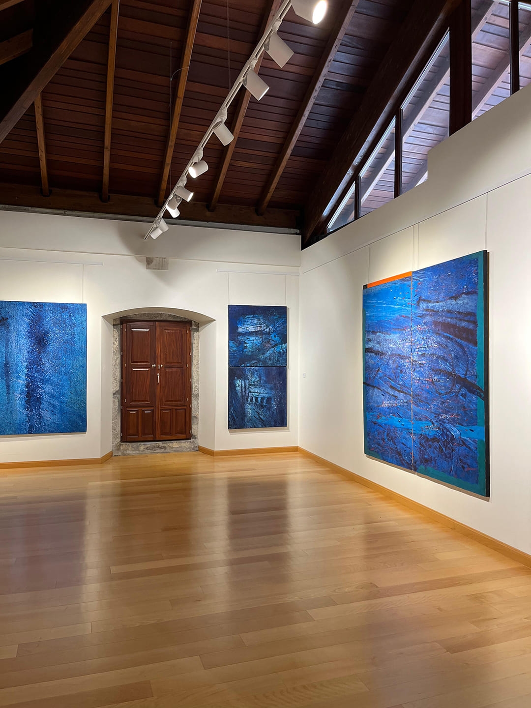 En un espacio cuidadosamente diseñado dentro de la exposición, reunimos las obras azules de la etapa “Del azul al azul” de Agustín de Celis, creando un ambiente envolvente que invita al espectador a sumergirse —no solo en el color, sino en la atmósfera líquida y contemplativa del mar —. Cada pintura es una ola de memoria, un fragmento de cielo caído, una exploración de lo intangible.